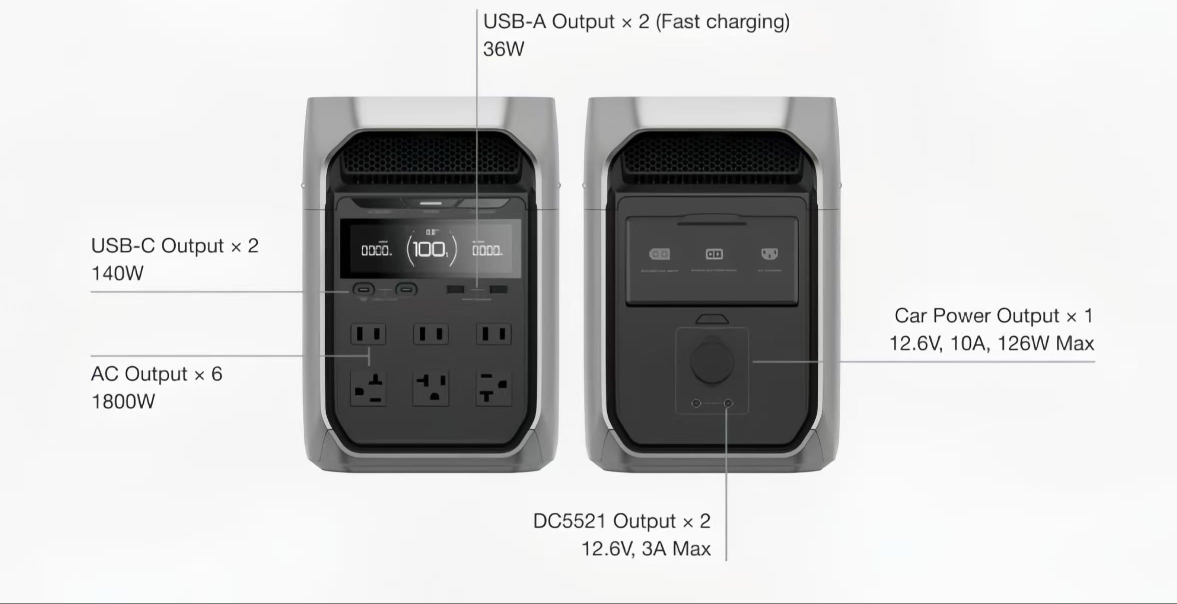 The design language of the Delta 3 line is a great improvement over the Delta 2 series. This unit boasts 1600w output and 1024wh of capacity, and can easily power your computers, TV, fridge and other smaller appliances. Great for camping or in the RV. I use mine to power my office and charge it from solar to keep my computer, network gear and camera system off grid.